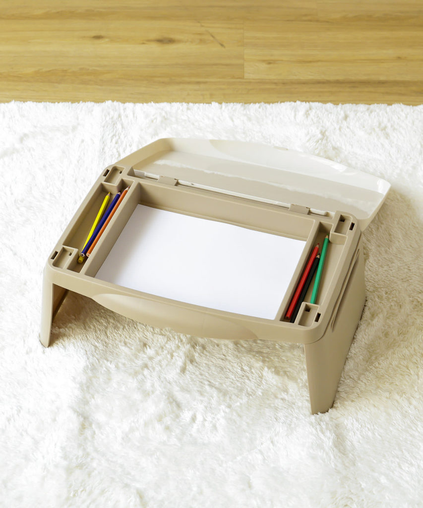 デスクの内側に色鉛筆やA4サイズの用紙などが綺麗に入るよ。